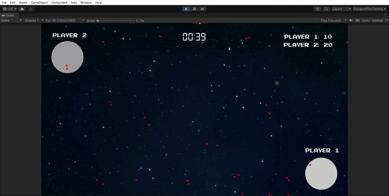 Control: Press WASD to move the Blue Agent. Gather the other Agents to Player 1 area by flocking them.