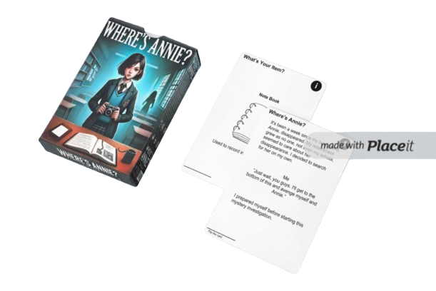 A mystery-solving card game that simulates a branching narrative without digital tools. Players take on the role of a student investigating a friend's disappearance, where every choice (flipping a card) leads to different story nodes based on the clues collected.